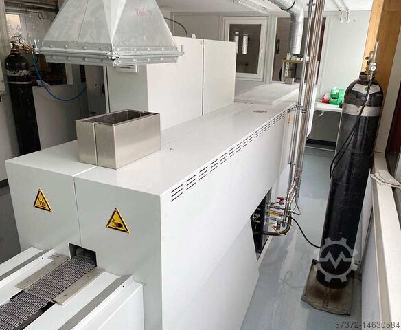 Max. Arbeitstemperatur: 1120°, beheizte Länge: 1000mm, Kühllänge: 1850mm, Kanalhöhe: 40mm, Förderbandbreite: 110mm, Durchlaufgeschwindigkeit: 100-1000mm/min, Spaltgasverbrauch: 1,5-2,5Nm³/h, Steuerungspanel: Siemens SIMATIC HMI, Länge: 5000mm, Breite: 650mm, Höhe: 1350mm, mit integriertem Ammoniakspalter GSP 25 FA, integrierter Begasungstafel, Schutzgas aus Ammoniakspalter (bauseitige Ammoniakversorgung) + N2 Spülgas nach Bedarf, MSR-Anlage mit Siemens SPS und Touch-HMI, Atmosphärenüberwachung, Prozessdokumentation, eine Besichtigung vor Ort ist möglich.