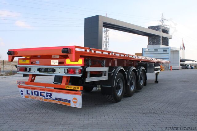 Schwerlast-Tieflader-Sattelauflieger. Lider Trailer für Schwerlastauflieger. Hochwertige und langlebige Fertigung. EU-Standards. EBS- oder Zweileiter-Bremssysteme. Ein Jahr Garantie auf Herstellungsfehler. Wunschfarbe des Kunden.