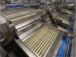 Diese Edelstahl-Kartoffelsortieranlage ist eine professionelle Lösung für die Größensortierung von Gemüse. Das System besteht aus einem Vibrationssieb mit 900 mm Arbeitsbreite und einem langen Sortiertisch, der die effiziente Trennung der Kartoffeln in verschiedene Fraktionen ermöglicht. Das 8.500 mm lange Förderband mit mehreren seitlichen Ausgängen und einem Querauslauf bietet flexible Arbeitsorganisation und die gezielte Separierung des Produkts zur Weiterverarbeitung oder Verpackung.