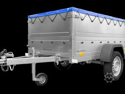Kippbarer Pkw Anhänger GARDEN TRAILER 200 KIPP mit zusätzlichen Bordwänden, Stützrad und Flachplane